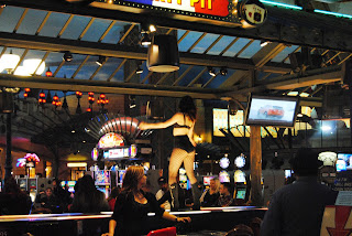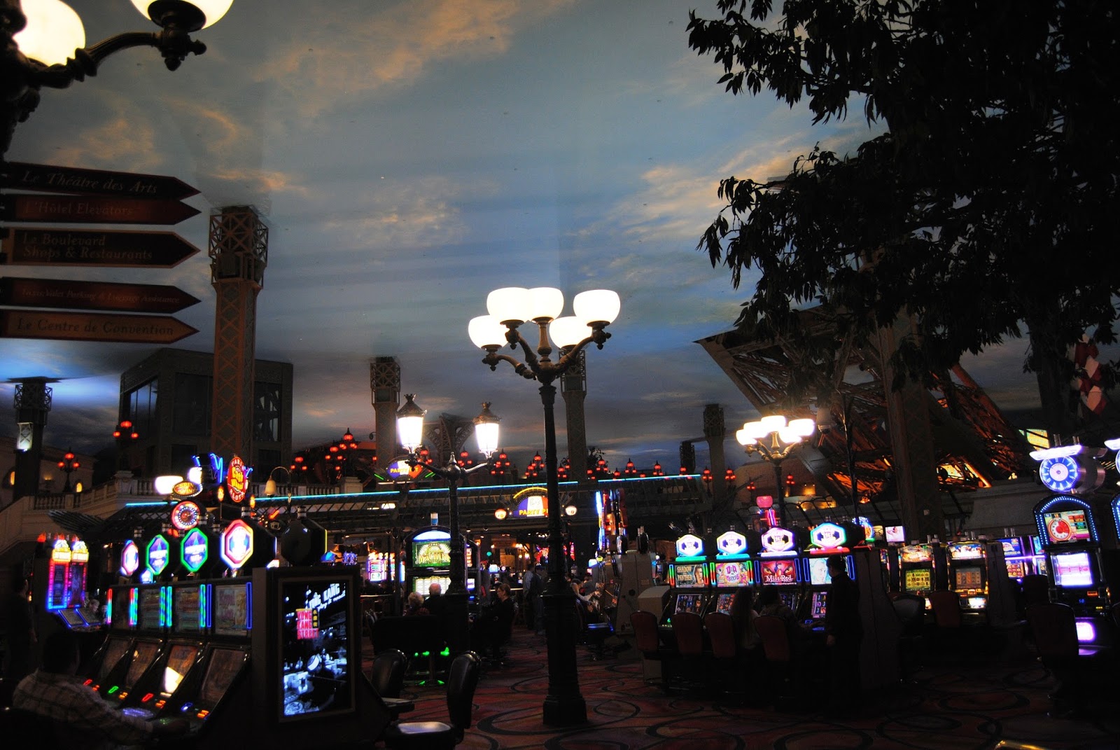 Frente al Bellagio encontrarás el Paris, con su reproducción del Palacio de la Ópera, la torre Eiffel a escala 1/2, la plaza de la Concordia, el Arco del Triunfo, etc.  Entre las columnas de la torre Eiffel hay una inmensa sala de juegos con señoritas ataviadas provocativamente, incitando al juego, a la fantasiosa transgresión, mientras la crupier exhibe los encantos de su exuberante delantera a los ojos del visitante, otra baila sobre una mesa contorneando su figura sensual y tentadora. El techo, debidamente decorado, parece un luminoso cielo parisino de verano. Sí, mejor mira la belleza de ese techo simulando el cielo azul y evita que la concupiscente libido te lleve al trastorno de un deseo de pasión inalcanzable. Tal vez, esas chicas, no son más que máquinas programadas para hacerte caer en la trampa con su encanto.